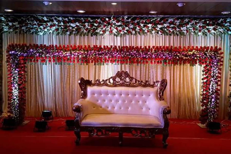 This spacious banquet is beautifully arranged to enjoy your special events. This can host upto 80 people.